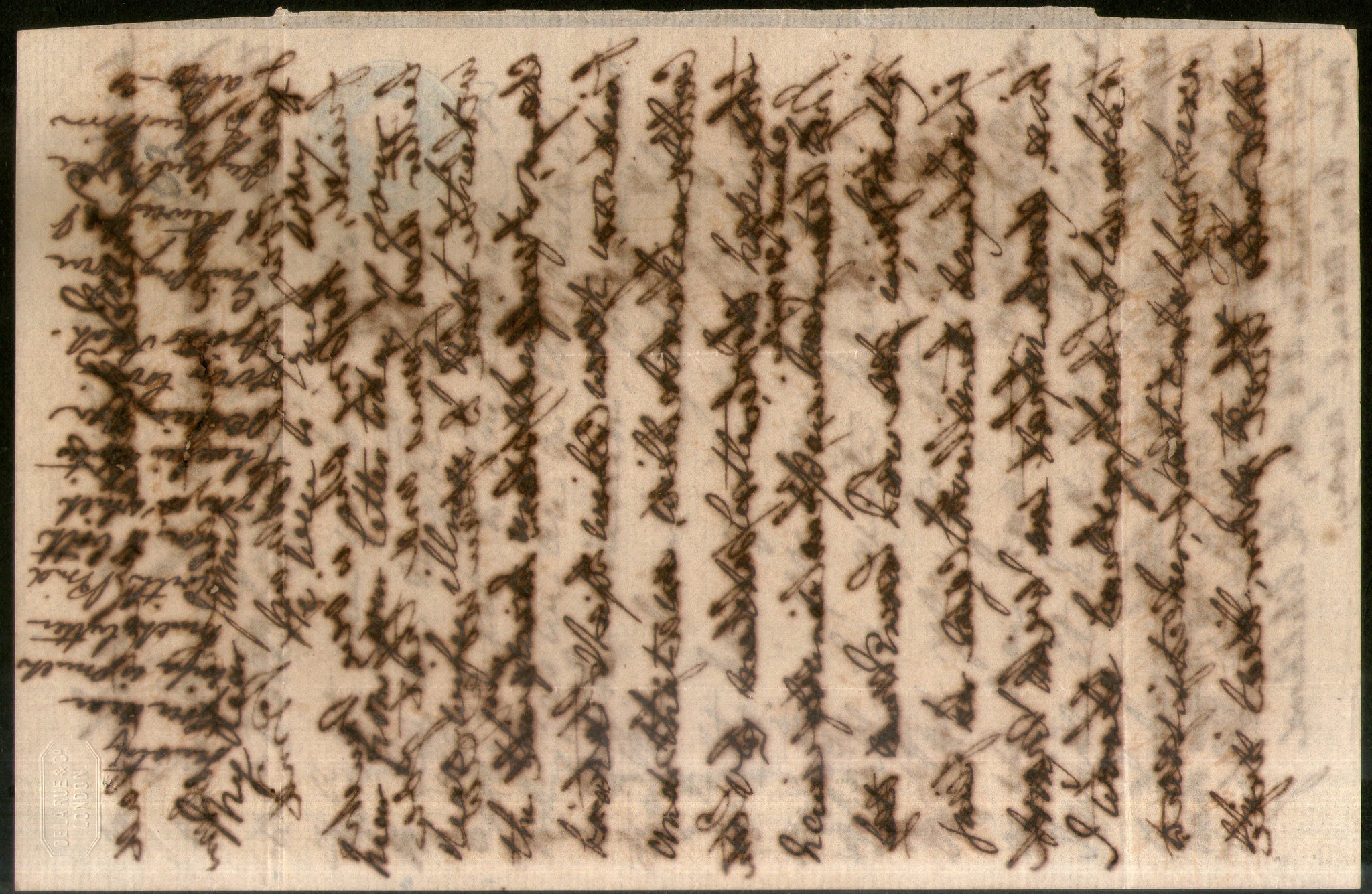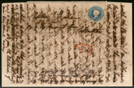 India 1865 QV ½An PS Letter Sheet t.w. Mynpooree hexagonal & Calcutta/Delivery Red Canc. # 19078